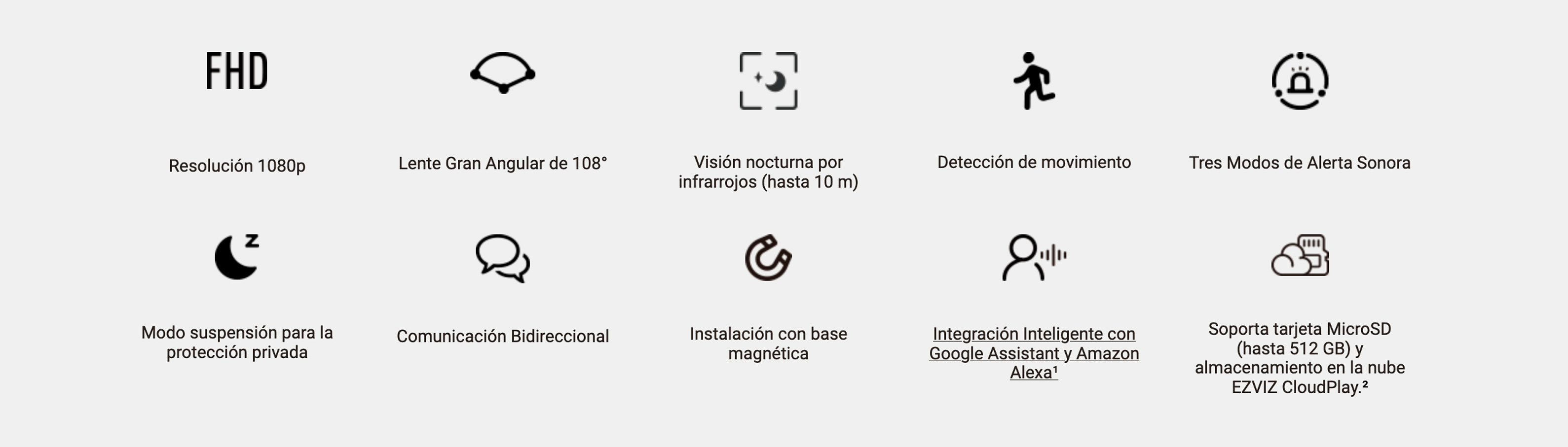 - Admite tarjeta MicroSD (hasta 512 GB, No incluida) y almacenamiento EZVIZ CloudPlay)