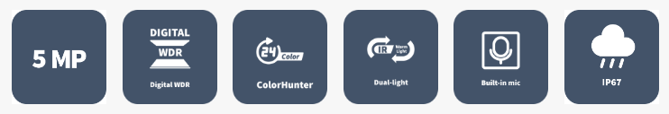 Cámara analógica de torreta de doble luz fija ColorHunter de 5 MP